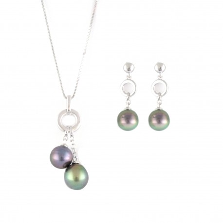 Parure NAOMIE en argent rhodié 925/1000 5 gr et 4 perles de culture de Tahiti, ces dernières sont en forme de gouttes d'un diamètre de 7-8 mm et 8-9 mm de qualité A/B